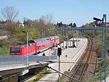 A new double-decker train, produced in 2004, running on line S10 in November 2013 at Leipzig Olbrichtstraße railway stop