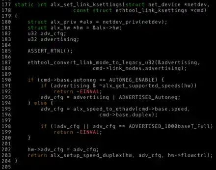 Piece of code from a module of the Linux kernel, which uses snake case for identifiers.