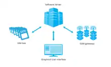 A SIM box (also called a SIM bank) is device used as part of a VoIP gateway installation. It contains a number of SIM cards, which are linked to the gateway but housed and stored separately from it. A SIM box can have SIM cards of different mobile operators installed, permitting it to operate with several GSM gateways located in different places.