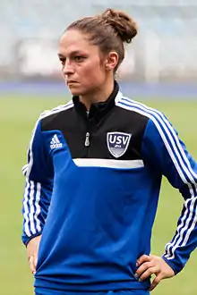 Sabrina Schmutzler is a German football striker, currently playing for FF USV Jena in the Bundesliga.[1] She was the 2. Bundesliga's top scorer in 2008, helping Jena reach the top category.[2] She represented Germany in the 2007 Summer Universiade.[3] She played 150 games in the Bundesliga, Germany's top football division.[4]