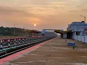 The Sabroom railway station is the terminus railhead of the 113 km long 1,676 mm (5 ft 6 in) broad-gauge Agartala–Sabroom railway line which comes under the Lumding railway division of the Northeast Frontier Railway zone of Indian Railways. It is a single line without electrification. On 3 October 2019, the first DEMU serving Agartala–Sabroom performed its inaugural run after the construction of railway line was completed. In 2016, 43 km long segment from Agartala to Udaipur near Mata Tripura Sundari temple was completed. On 3 October 2019, the remaining Udaipur-Sabroom segment was also completed.[2][3][4][5]