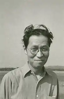 Hasegawa helped reorganize a prominent oil painting exhibition society as the Jiyū Bijutsuka Kyōkai ("Free Artists Association") in 1937. The society became a champion of abstraction in the Japanese art world. In the late 1930s, Hasegawa began to explore media besides painting, including photography.[4] In 1938, Hasegawa traveled to China to visit his brother who was stationed there for military service. The trip inspired him to take up photography, and the scenery, in particular the ancient Buddhist cave temples, inspired him to work in modernist photographic modes.[5] He exhibited his documentary photography with the Jiyū Bijutsuka Kyōkai.[6]