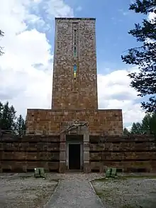 Sacrario militare di Pocol (also known as Ossario di Pocol) is a cemetery and shrine near the Falzarego Pass, in the locality of Pocol in the comune of Cortina d'Ampezzo in the Veneto region of northern Italy. The small church and cemetery were built in 1916 as a military cemetery by the 5th Alpine group. A shrine was built in 1935 as memorial to the thousands who died during World War I on the Dolomite front. It is a massive square tower of stone, clearly visible from the entire Ampezzo valley below. The remains of 9,707 Italian soldiers (4,455 of them unknown) and 37 Austro-Hungarian soldiers are buried in the shrine.[1] In a crypt in the centre of the structure rests the body of general Antonio Cantore, who was awarded the gold medal for military valor.[2]