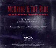 Three years after Brooks's version charted, McBride & the Ride recorded its own version of "Sacred Ground." It was released in March 1992 as the lead-off single to the band's second album, also titled Sacred Ground. The song reached a peak of #2 on the Billboard country charts (having been blocked from #1 by Billy Ray Cyrus' debut single "Achy Breaky Heart"[1]), representing the band's highest chart peak.