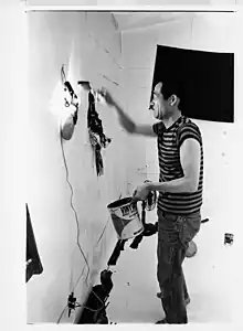 Sadaharu Horio was born in 1939 in Kobe, Japan. His father worked as a cameraman for the military and later for a newspaper. Although he showed interest and talent in painting in his youth, in 1955 Horio began training in the Kobe shipyard of Mitsubishi Heavy Industries. He worked for the company until his retirement in 1998. In 1956, Horio first caught the attention of the Gutai group’s leader Jirō Yoshihara. In 1965, he participated in the 15th Gutai Art Exhibition at the Gutai Pinacotheca in Osaka, but shortly after, had a crisis and destroyed all his works with the intention of quitting painting.[1] Horio continued, encouraged by Kazuo Shiraga and Saburo Murakami, and became an official member of Gutai in 1966, holding a solo show at Gutai Pinacotheca in 1968. In 1969, he became a member of the Ashiya City Art Association. He participated in Gutai projects until its dissolution in 1972.