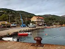 The Sagone valley is the most northerly of the watersheds in the Liamone landscape.[3] The lower valley has large beaches and gentle relief, and is urbanized along its coastal fringe, with an almost continuous constructed line. Behind the seaside resort there are some remains of the city of Sagone, a Roman colony and later the seat of a bishopric, that was abandoned before the 16th century due to malaria epidemics and barbarian raids.[4]