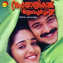 Sahayathrikakku Snehapoorvam (transl.With love to fellow travelers) is a 2000 Indian Malayalam comedy film directed by M. Shankar, who previously directed Nakshatratharattu (1998).[1] It stars Kunchacko Boban and Kavya Madhavan.[2]