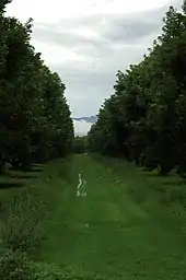 A view of the Pecan groves, with a glimpse of Santa Rita Mountains in the background, during the August monsoons (2007).