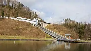 The Saint-Louis-Arzviller inclined plane is an inclined plane on the Marne-Rhine Canal (French: Canal de la Marne au Rhin) that enables the canal to cross the Vosges Mountains. It is located in the commune of Saint-Louis, between the towns of Saint-Louis and Arzviller in the département of the Moselle.