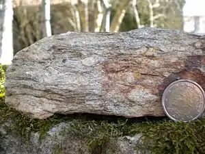 Augengneiss of the Lower Gneiss Unit near Mialet. These augengneisses overthrust the dome in the east.