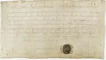 Exemption granted by Louis the Pious to the abbey of Saint-Maur-des-Fossés from all tolls and traffic rights dated June 20, 816. Archives nationales.