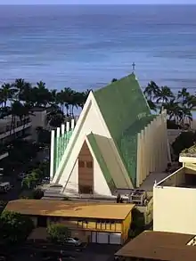 Saint Augustine by the Sea Catholic Church is a parish of the Roman Catholic Church of Hawai‘i in the United States. It falls under the jurisdiction of the Diocese of Honolulu and its bishop; it is staffed by the Congregation of the Sacred Hearts of Jesus and Mary. Located at 130 Ohua Avenue, adjacent to Kalākaua Avenue in Waikiki, Saint Augustine by the Sea ministers primarily to visitors, as Waikiki contains the highest number of domestic and international visitors in the State of Hawai‘i.