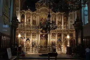 The Cathedral Church of the Holy Great-Martyr George (Serbian: Саборни храм Светог великомученика Георгија, Saborni hram Svetog velikomučenika Georgija) is the seat of the Serbian Orthodox Eparchy of Bačka, located in Novi Sad, northern Serbia. The present-day church was completed in 1905, on the ruins of a church built in 1734 and destroyed in 1849. It is located next to the Eparchy offices in the Bishop's Palace, in Nikola Pašić Street. It is commonly known as Saborna crkva ('Cathedral Church') among the city residents.[1]