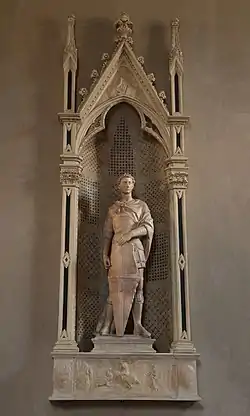 Saint George is a marble sculpture by Donatello. It is one of fourteen sculptures commissioned by the guilds of Florence[1] to decorate the external niches of the Orsanmichele church. St. George was commissioned by the guild of the armorers and sword makers, the Arte dei Corazzai e Spadai.