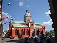Saint James's Church (Swedish: Sankt Jacobs kyrka) is a church in central Stockholm, Sweden, dedicated to apostle Saint James the Greater, patron saint of travellers. It is often mistakenly called St Jacob's. The confusion arises because Swedish, like many other languages, uses the same name for both James and Jacob.