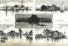 ![]() The settlement as it appeared in Harper's Weekly, 1883. | |