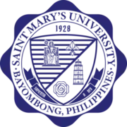 Saint Mary's University is a private Catholic higher education institution owned and operated by the Congregation of the Immaculate Heart of Mary (CICM) in Bayombong, Nueva Vizcaya, Philippines. It was founded in June 1928.