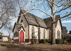 The Gothic Revival church building was constructed in 1885 and added to the National Register of Historic Places in 1986.