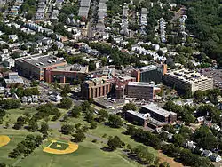 ![]() Saint Peter's University Hospital - pictured from left to right: CARES Surgicenter, Women & Children's Pavilion, Hospital, ER, Medical Office Building and Parking Deck. | |