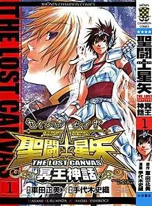 Saint Seiya: The Lost Canvas – The Myth of Hades (Japanese: 聖闘士星矢 The Lost Canvas 冥王神話, Hepburn: Seinto Seiya Za Rosuto Kyanbasu - Meiō Shinwa), also known as simply The Lost Canvas, is a Japanese manga series written and illustrated by Shiori Teshirogi. It is a spin-off based on the manga series Saint Seiya, which was created, written and illustrated by Japanese author Masami Kurumada. The Lost Canvas was published by Akita Shoten in the Weekly Shōnen Champion magazine since August 24, 2006, concluding after 223 chapters on April 6, 2011, with twenty-five tankōbon released. Originally envisioned as a comic book whose purpose was to work simultaneously with Kurumada's Saint Seiya: Next Dimension as a multi-angle interpretation of the shared elements of its storyline, which stems from an event mentioned in Kurumada's original Saint Seiya manga; the approach was quickly abandoned, as both works greatly diverged, Kurumada's Next Dimension stayed as the canonical telling of these events, and The Lost Canvas as a separate alternate retelling. The story takes place in the 18th century, and focuses on how an orphan known as Tenma becomes one of Athena's 88 warriors known as Saints and finds himself in a war fighting against his best friend Alone who is revealed to be the reincarnation of Athena's biggest enemy, the God Hades.[1]