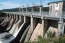 There are three hydroelectric dams on the river, the first two near its mouth and the third and largest about 90 kilometres (56 mi) inland.
