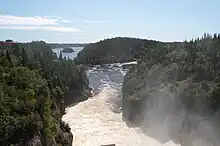 The hamlet of Barrage-Sainte-Marguerite is about 10 kilometres (6.2 mi) north of the river mouth. It grew up around the hydroelectric plant built in 1908 by the Clarke brothers on the site of the Amont Falls. Highway 138 crosses the dam.[2]