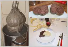 Salama da sugo has been part of Ferrara's culinary tradition for centuries. Riccardo Bacchelli in his Il mulino del Po (The Mill of the Po) mentions it twice.[3] Renzo Ravenna, despite his Jewish faith, consumed it, even if only once a year.[4] The Este Jewish community, which has been present in Ferrara for centuries, has produced a kosher variant.[5] Orio Vergani said he appreciated it thanks to Italo Balbo who, during his visits to Ferrara, let him know all the secrets of the city.[6]