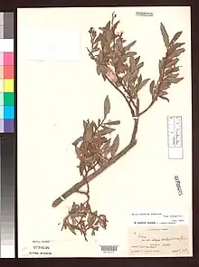 Salix characta is a species from the genus of willows (Salix) in the willow family (Salicaceae).[1] There, it is the section vimen assigned.[2] It was described for the first time scientifically in 1916 by Camillo Karl Schneider.[1] The genus name Salix is Latin and has been from the Romans used for various willow species.[3]