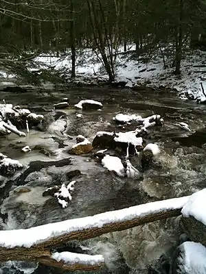 Snow, ice and water at a stream crossing on the Salmon River Trail.