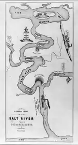 Geographically, the Salt River is a 150-mile-long river running through the state of Kentucky, running from near Parksville and emptying out into the Ohio River near West Point.[2] Before the use of railroads, the Ohio River was the main waterway of travel, with boats carrying hundreds of passengers every day. As an implication, to go up Salt River was to leave the main, conventional way of travel, leaving people with the potential to "end up in the middle of nowhere on a dead-end stream."[3] This reflects the metaphor of political defeat which it symbolises.