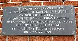 A plaque on the westbound platform commemorates the 125th anniversary opening of the Royal Albert Bridge on 2 May 1859