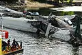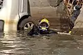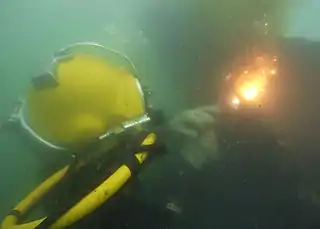 Salvage diving is the diving work associated with the recovery of all or part of ships, their cargoes, aircraft, and other vehicles and structures which have sunk or fallen into water. In the case of ships it may also refer to repair work done to make an abandoned or distressed but still floating vessel more suitable for towing or propulsion under its own power.[1][2][3] The recreational/technical activity known as wreck diving is generally not considered salvage work, though some recovery of artifacts may be done by recreational divers.