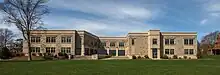Named for Mary James O'Hare, the university's first academic dean, the O'Hare Academic Center houses classrooms, laboratories, faculty offices, the Bazarsky Lecture Hall and the Jazzman's Cafe. Designed by East Providence architect Edward P. Denning,[31] it was built in 1968, and in 2015 underwent a major renovation and expansion project in 2017.[32][33]