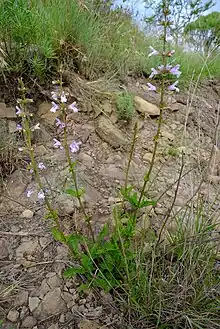 Salvia aurita (African valley sage) is a herbaceous perennial shrub native to South Africa (the Cape Provinces, KwaZulu-Natal and the Northern Provinces) and Eswatini.[1] It is found growing on streambanks. It grows to 1.2 m (3.9 ft) tall, with numerous blue, white, and lilac flowers growing in whorls on short racemes.[2]