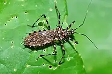 Salyavatinae are a subfamily of the assassin bugs. They have a pan-tropical distribution with about 16 genera.[1] They have two foretarsal segments and have a patch of fine hairs known as the fossula spongiosa on the fore and mid tibia. Many species tend to have spines on the head, pronotum, legs and abdomen. A few species have the foretibia flattened into leaf-like structures.[2]