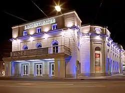 The Salzburg State Theatre (Salzburger Landestheater) is a theatre situated in Salzburg, Austria, a venue for opera, theatre, and dance, contemporary and older works, with resident companies of actors, singers and dancers. The theatre presents approximately 400 performances each season, from September to June. The main theatre building is located next to the Mirabell Gardens and seats an audience of 707. The staff consists of 340 people originating from 35 different countries.