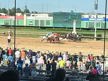 Along with the 1-mile dirt track and 7-furlong turf course for the horses, Sam Houston Race Park offers 8 bars, 2 restaurants, Grandstand luxury suites: San Jacinto Suite, Celebration Suite, Director's Suite, Sam Houston Suite, and numerous House Suites.[8] The park contains many concession areas on the Paddock and Club levels.