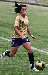 Wood started to take up football because her grandfather and mother started to disapprove of her playing rugby league.[3][4] Wood represented the Australia national football team, The Matildas, at under-17 and under-20 levels.[3] With the former, she was part of a team that achieved a silver medal in the Youth Olympic Games.[5] She played for Newcastle Jets for the 2008–2009 season and made eight league appearances, including four as a substitute.[6] Her season ended prematurely due to a boating accident, which resulted in a fractured skull.[7] Her next football club was Western NSW Panthers.[7]
