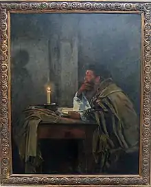 In 1900, after working on a large painting, "The Eternal Jew," for over four years, it was exhibited in the Paris Salon. Disappointed by the poor response in Paris Munich and Berlin, he retired for health reasons.[3]