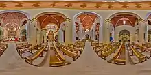 The main altar has a Retablo with sculptures of the evangelists Mark and Luke, and two saints. Some panels depict the Fathers of the Roman Church (Augustine, Ambrose, Hieronymus, and Gregory the Great).
