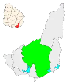 San Carlos is a city in the Maldonado Department of southern Uruguay. "San Carlos" is also the name of the municipality to which the city belongs. The municipality includes the following zones: San Carlos, El Tesoro, La Barra, Edén Rock, El Chorro, Manantiales, Balneario Buenos Aires, Punta Piedras, Santa Mónica, San Vicente, El Edén, Paso de la Cantera, Las Cañas, Carapé, Mataojo, Guardia Vieja, Pago de la Paja, Partido Norte, Partido Oeste, Cañada Bellaca, Corte de la Leña, Punta del Campanera, Puntas de Mataojo, and Laguna José Ignacio.
