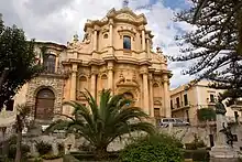 San Domenico is a Baroque-style, Roman Catholic church and monastery located on via Matteo Raeli facing Piazza XVI Maggio in the town of Noto (province of Syracuse) in the region of Sicily, Italy. Across the park with the Fontana di Ercole and Via Vittorio Emmanuele rises the town's opera house, now called the Teatro Comunale Tina di Lorenzo. The church is considered one of the masterworks of the architect Rosario Gagliardi.
