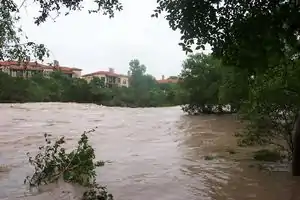 The San Gabriel River is a river that flows through central Texas, USA. The San Gabriel River is formed in Georgetown by the confluence of the North Fork San Gabriel and the South Fork San Gabriel, both of which originate in Burnet County. There are two major impoundments of the river: Lake Georgetown along the North Fork, and Granger Lake, about 25 miles (40 km) below the confluence. Both are U.S. Army Corps of Engineers impoundments. The San Gabriel River joins the Little River five miles south of Cameron which then meets the Brazos River northwest of College Station. There is a city park in Georgetown at the confluence of the North and South Forks, with a well-known local swimming spot (the "Blue Hole") located just upriver from the confluence on the South Fork.