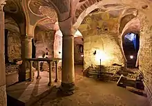 The construction of the crypt probably dates from the mid-10th to the beginning of the following century. It develops entirely under the current floor of the church and is accessed by a staircase from which you go down, on the north side of the church nave. Due to the interventions promoted in 1611, the crypt was closed and was used only as an ossuary.