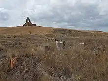 The village of San Jorde de Ojeda once consisted of around five houses, a fountain and a small church.[5] The church was constructed in the 13th century and remained in a good state of repair until 1975 when it was targeted by vandals and thieves who removed the Roman windows, the roof and large amounts of stone. The spire atop the building remains intact.[6] Parts of the fountain still remain, but the ruins of the houses have largely disappeared.
