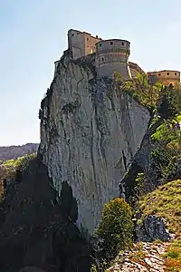 San Leo (Romagnol: San Lé) is a comune (municipality) in the Province of Rimini in the Italian region Emilia-Romagna, located about 135 kilometres (84 mi) southeast of Bologna and about 35 kilometres (22 mi) southwest of Rimini. It is one of I Borghi più belli d'Italia ("The most beautiful villages of Italy").[3]