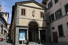 The oratory was refurbished in the 17th century, adding the portico and laminating the interior with marble and quadratura. During this time, the interiors were embellished with the altarpieces (1622) depicting: on the right the Resurrection by Giovanni Lanfranco for the Arfaruoli family and on left the Ascension of Christ by Stefano Marucelli for the Bronconi family. During 1753–1764, the apse and presbytery dome were decorated initially starting with Raffaello Ulivi, but mostly with the efforts of Vincenzo Meucci and Lorenzo del Moro with a large fresco depicting the Descent of the Holy Spirit. Moro contributed to the quadratura and lateral walls. In 1764, Mauro Tesi completed the nave ceiling frescoes. Between 1710 and 1773, the oratory was detached from the Congregation of Santo Spirito and granted to the bishop's seminary, who changed the dedication to San Leone.[2][3]