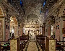 A guide to Rome from the early 19th century cited a main altarpiece by Giovanni Battista Lelli. The church contained a tomb memorial for Cardinal Giorgio Spinola, designed by Bernardino Ludovisi.[2]
