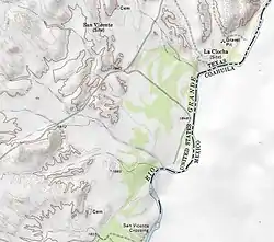 San Vicente settlement established cemeteries north and south of the village vicinity encompassing 1.6 miles (2.6 km) between the memorial grounds.[2][3] The south funerary plot, also known as the San Vicente Crossing cemetery, has a proximity to the San Vicente Crossing on the Rio Grande.[4][5]