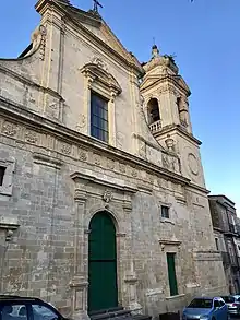 A place of worship at the site was present in the paleochristian era, aided by the presence of burial catacombs. Initially called the church of Spirito Santo (Holy Spirit). When the church was rebuilt, it incorporated also an oratory or church dedicated to San Vito. The interior contains an altar by the school of Antonello Gagini, and a 15th-century statue depicting St Michael Archangel. The facade has a decorative frieze and volutes linking to the aisles. The bell-tower has some moorish designs.[1]